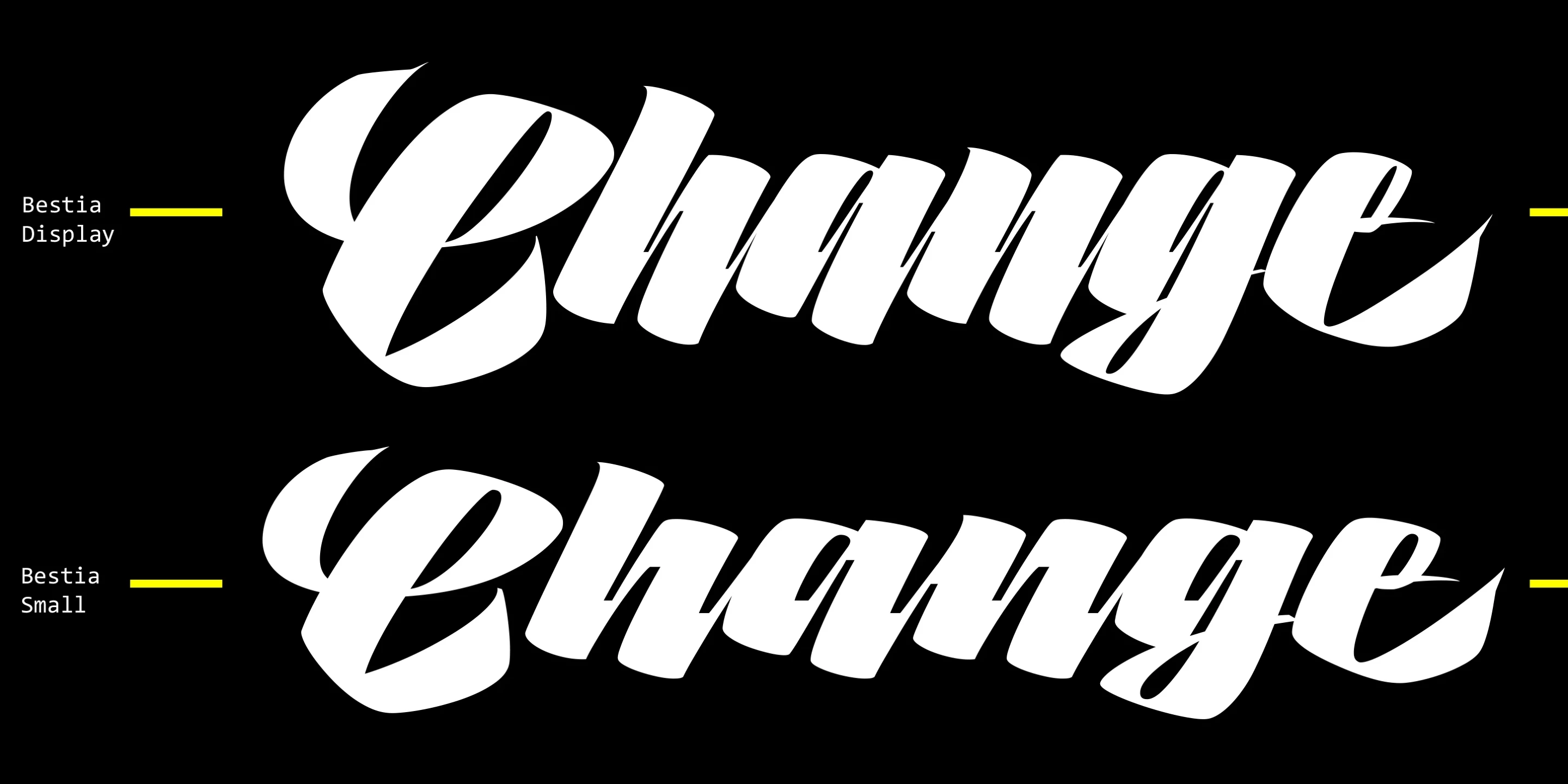 Bestia is a high-contrast brush script that commands attention with bold sweeping strokes inspired by Max’s pointed brush calligraphy practice. Conveying raw energy, the gestural forms are perfect for high-end brands and glossy magazines. Subtle shifts in contrast provide dramatic emphasis for large type and improved readability at smaller sizes. Daring and lively, Bestia will definitely leave a mark. Available as a variable font or in four styles — Display, Heading, Subhead, and Small.