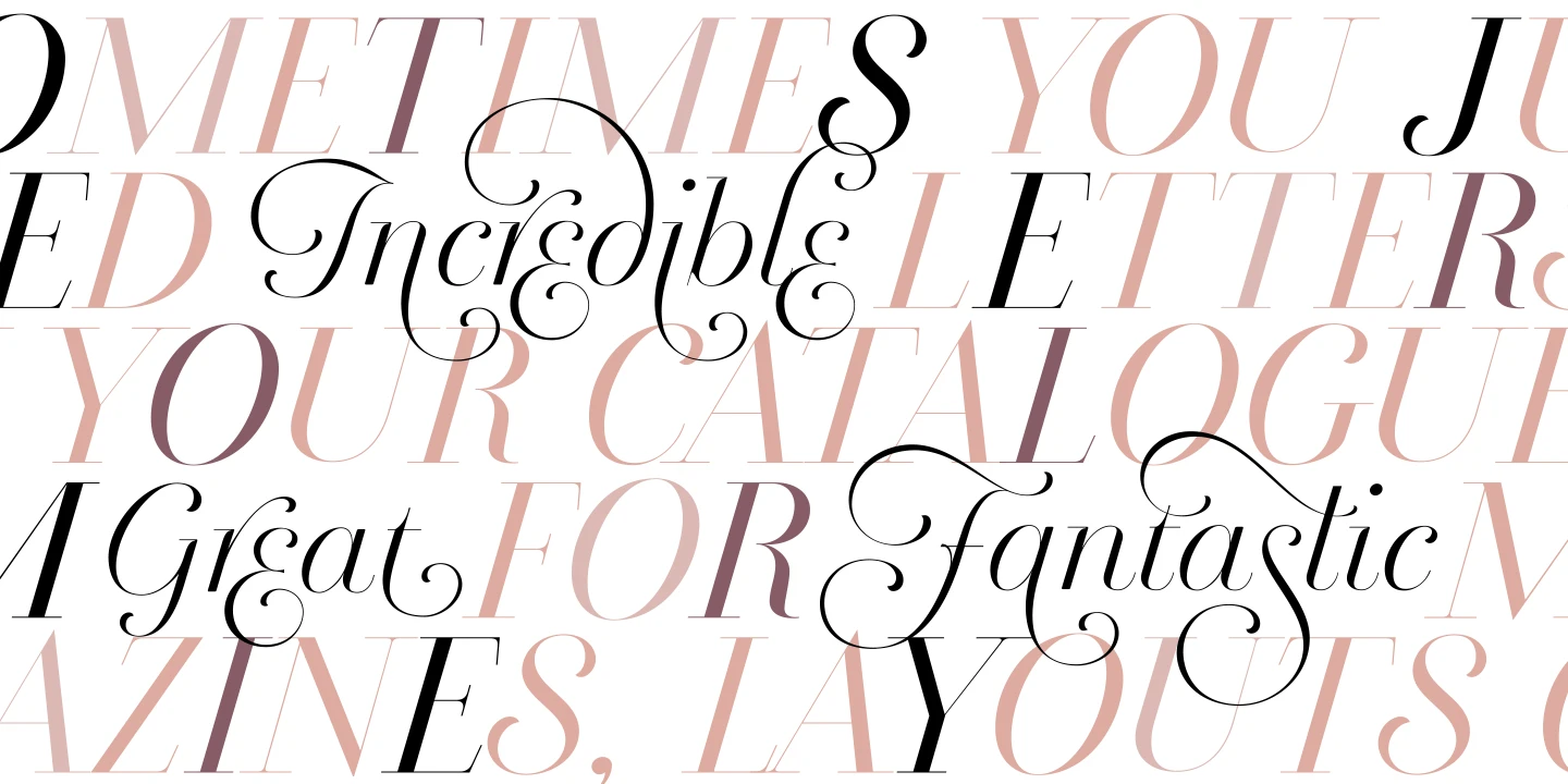 Breathe Neue is a swashy serif font family answering the question, “what if the Didone style had been turned into a script?” Delighted by the typographic works of Didot and his followers at the beginning of 1800, Breathe Neue answers this question with resounding beauty, refinement, and polish. The opportunities for extravagant visual design are limitless. Above all else, experiment with its swashes and flourishes, and watch as your words move as if they are alive.
