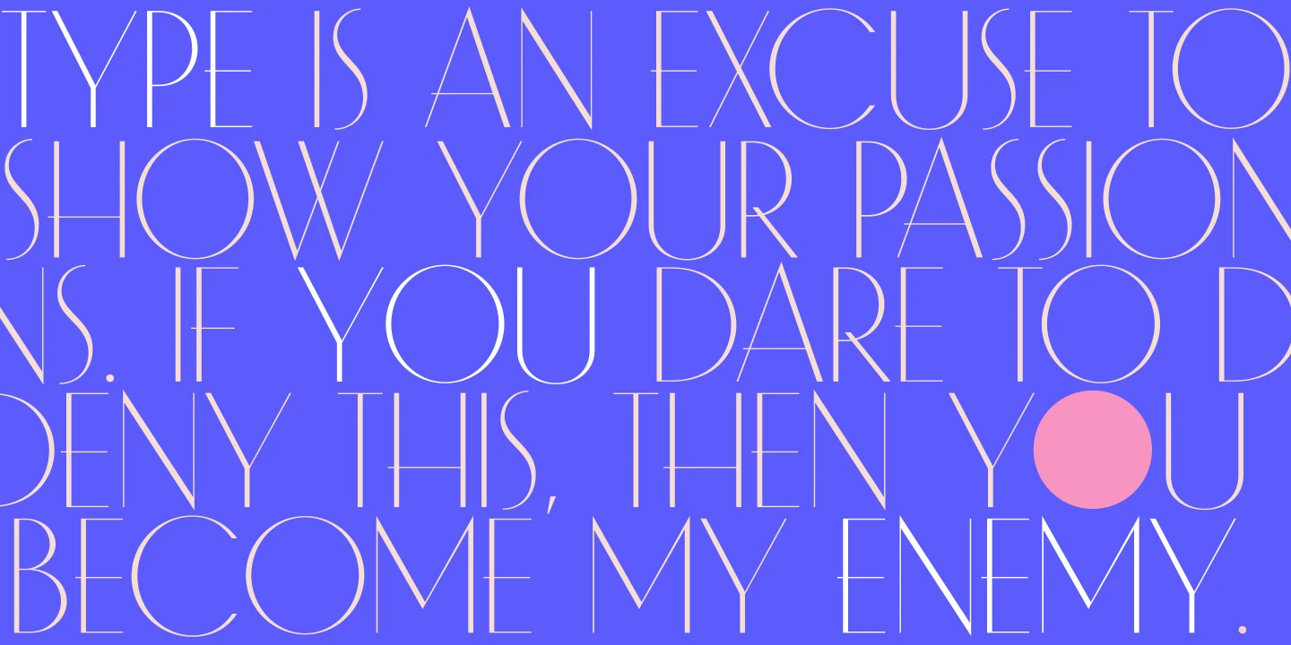 It all began with an ellipse. Like an artist who goes from a pictorial logic to one more abstract, Max stripped all ornamental detail from the geometry of Elipses. The beauty of the font is laid bare, proving there is no need for complexities. The font comprises ellipses and stems with some inspiration from the Art Deco letter shapes and architecture. Editorial magazines, display books, ad campaigns, and fashion! Elipses is for any designer who wants to cause a stir in an elegantly dramatic way.