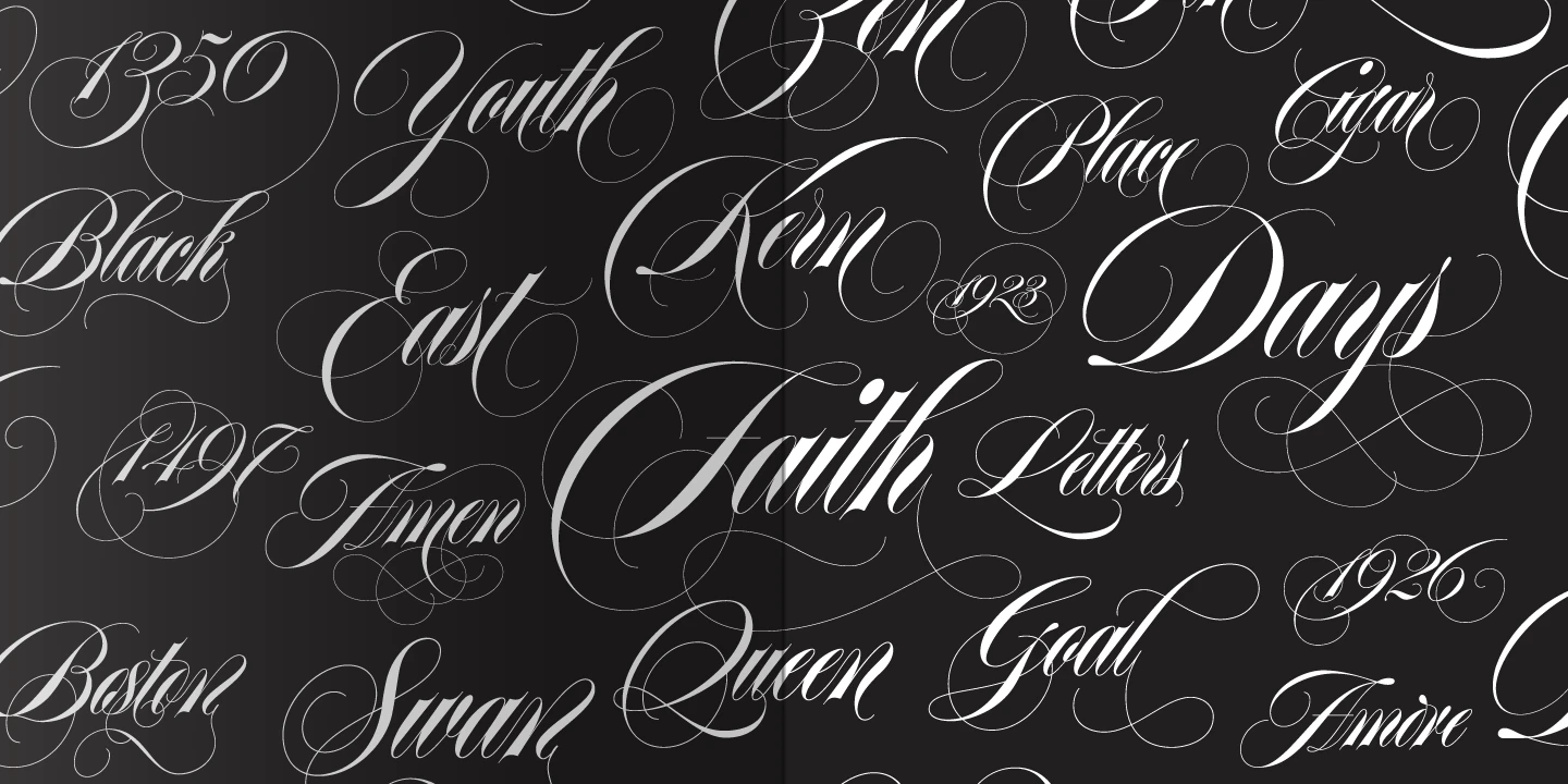 Erotica is a sumptuous copperplate script designed to explore the elegance of contrast, curves, and calligraphic flourish. Inspired by roundhand and refined through endless experimentation, it includes a wide range of alternates, ligatures, ornaments, and companion styles — from delicate Small to ornate Inline and classic Capitals. It is display typography perfection for magazines, packaging, invitations, posters, and more! Erotica invites expression and personalization with every word.