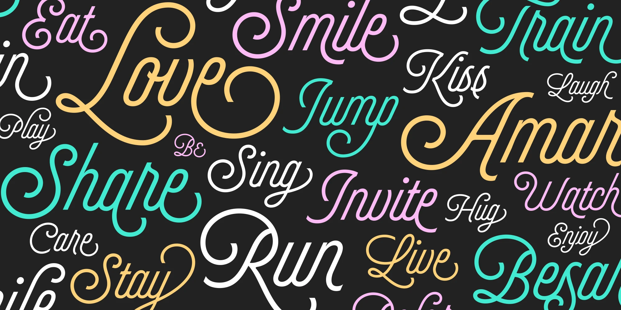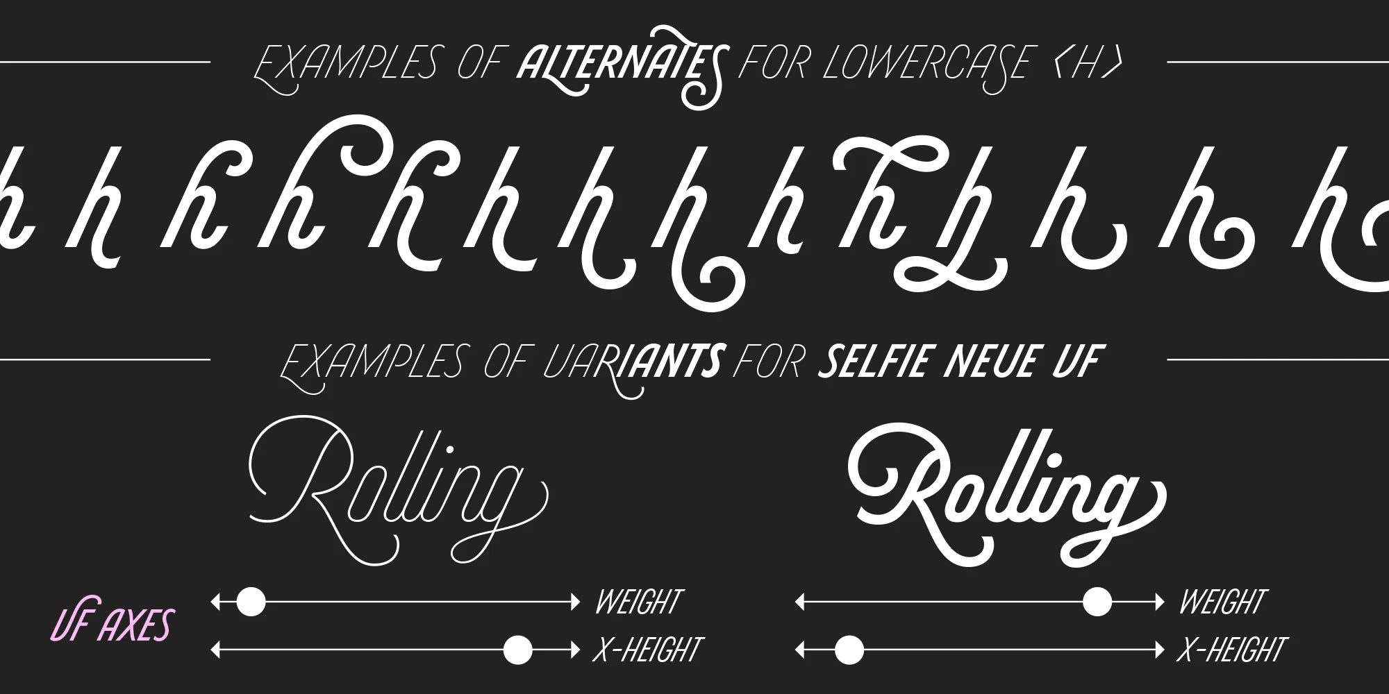 Selfie Neue Sharp is a vibrant monoline script blending elegant Spencerian logic and energetic Buenos Aires neon. While the diverse ligatures and swashes give it personality and rhythm, the Caps companion font and the variable axes for weight and x-height offer endless typographic flexibility. Whether you’re developing brands, book covers, restaurants, festivals, packaging, or digital content, Selfie Neue is expressive, stylish, and impossible to ignore. Dingbats designed by Melissa Cronenbold.
